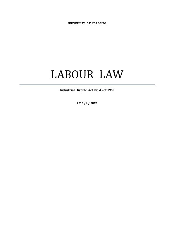 Pdf Primary Objectives Of The Industrial Dispute Act No 43 Of 1950 In Sri Lanka Overview And Analysis Hashintha Vidanapathirana Academia Edu
